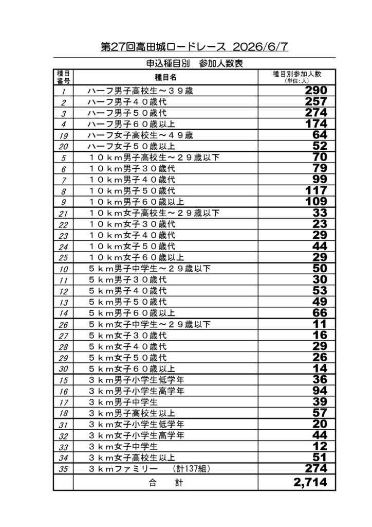★第27回高田城ロードレース大会参加申し込みの開始について