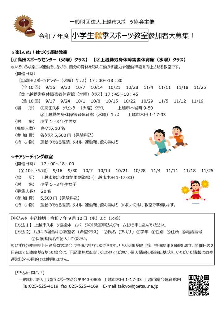 【小学生教室】 ※上越市内の各小学校には配布してあります。 ※募集は終了しました。