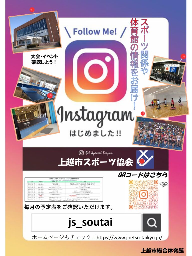 上越市スポーツ協会では公式Instagram(インスタグラム)を開設しました。