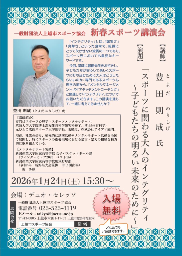 新春スポーツ講演会【主催:一般財団法人上越市スポーツ協会】を開催します。